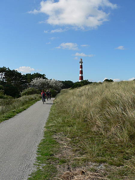 Für die Strandwanderung hat man ca. 40km Strand zur Verfügung, es kommen noch mal ca. 20km Deich an der Watt-Seite dazu. Beinahe rund um Ameland führen Radwege, lediglich die letzten Kilometer vor dem Ost-Ende sind nur über den Strand zu Fuß erreichbar. Dazu kommen Radwege über die Insel in alle Richtungen, das Fahrrad hat hier Priorität als Fortbewegungsmittel. Nichts gibt es auf Ameland mehr als Fahrrad-Verleih. Wer sein eigenes Rad also vor Sand und Salz schützen möchte, kann an jeder Ecke Fahrräder aller Klassen leihen.