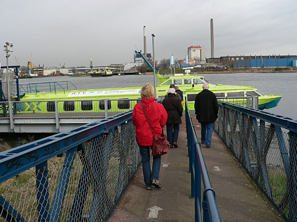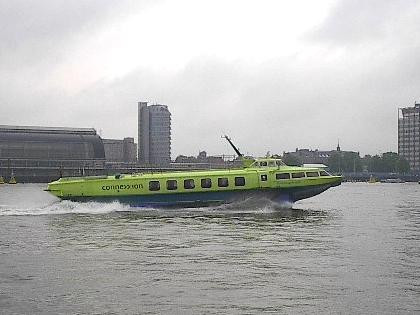 Nahe Beverwijk, in Velsen, startet ein Schnellboot, das einen für 7€ in gut 20 Minuten bis nach Amsterdam zur Zentral-Station bringt (übrigens ist das ein russisches Boot, das die Amsterdamer Verkehrbetriebe gekauft haben). Das Tragflügel-Boot schießt mit Highspeed über die Ij direkt in die Stadt und landet direkt hinter dem Hauptbahnhof an einem Pier. Der schnellste und bequemste Weg von hier nach Amsterdam. Und der interessanteste, wenn auch die Umgebung durch Industrie und Häfen geprägt ist.