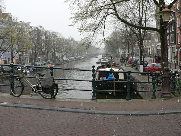 Und das Ende vorweg zu nehmen: das Wetter war uns nicht hold, vor lauter Schneetreiben waren die Grachten kaum zu sehen, von gemütlichen Pausen unter freiem Himmel in Cafes und Kneipen musste wegen der Kälte abgesehen werden. Trotzdem ein paar Erfahrungen und Tipps für die, die Amsterdam bei gutem Wetter erwischen.