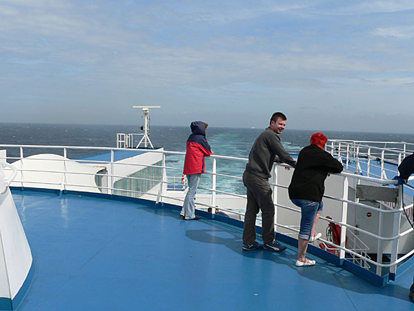 Wie kommt man dahin? Entweder per Hubschrauber oder Flugzeug ab Land’s End, Penzance oder Exeter. Alternativ ab Penzance mit einem Schiff morgens um 9:15h, Mittwochs schon um 8:00h, die mittelgroße Fähre fährt täglich nach St. Mary’s. Vorbuchen ist in den Sommermonaten stark empfohlen, eine eintägige Hin- und Rückreise kostet 36£ pro Nase. In gut 160 Minuten geht es hinüber, in etwas kürzerer Zeit um 16:30h wieder zurück zur großen Insel. Bei schlechtem Wetter und/oder schwerer See sollte man sich den Ausflug sparen, es sei denn, man hat eine Astronauten-Ausbildung oder eh keinen Magen. Für weitere Details sei auf den Rough Guide verwiesen, da stehen auch Telefon-Nummern und Historie der Isles of Scilly drin. Unser Schiff war die Scillonian III, ein gepflegtes und sauberes Schiff mit Kneipe, Bistro und vielen Außenplätzen.