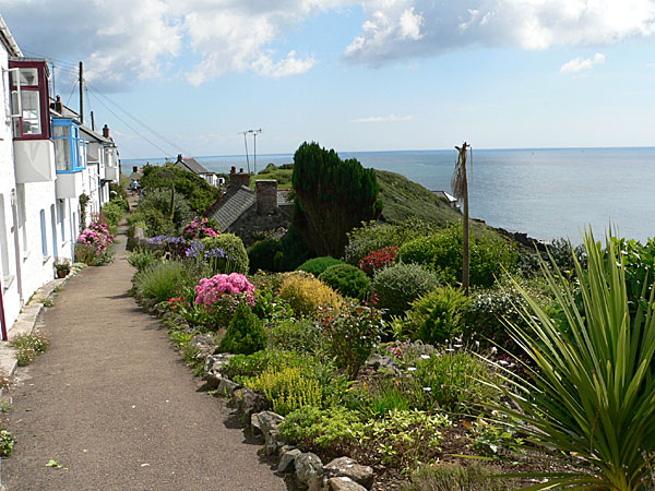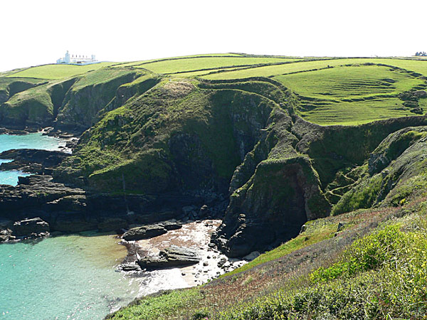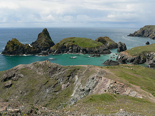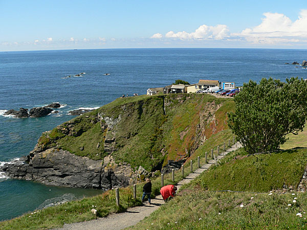 Cadgwith ist ein uriger Flecken, ein winziges Fischerdorf, hineingezwängt in die Cadgwith Cove. Trotzdem gibt es hier zwei Restaurants der besseren Klasse, zwei Cafes und ein paar Läden. Aber der Ort ist klein, mit dem Auto kaum befahrbar. Eben urig und alt. Rechts und links der Bucht stehen jedoch ein paar Häuschen an den Hängen, die sicher nicht schlecht betuchten Leuten gehören. Denn schön ist die Ecke allemal. Von Cadgwith führt wieder der Coastal Path zurück Richtung Lizard Point. Und auch dieser Abschnitt ist gut zu gehen, wenn auch wieder mit mehreren Auf- und Abstiegen. Und interessant allemal, die Aussichten auf die Küstenbereiche und die Gegend lassen das Prädikat „Area Of Outstanding Natural Beauty“ gerechtfertigt erscheinen. Sicher auch deshalb stehen viele Bereiche unter dem Schutz des National Trust.