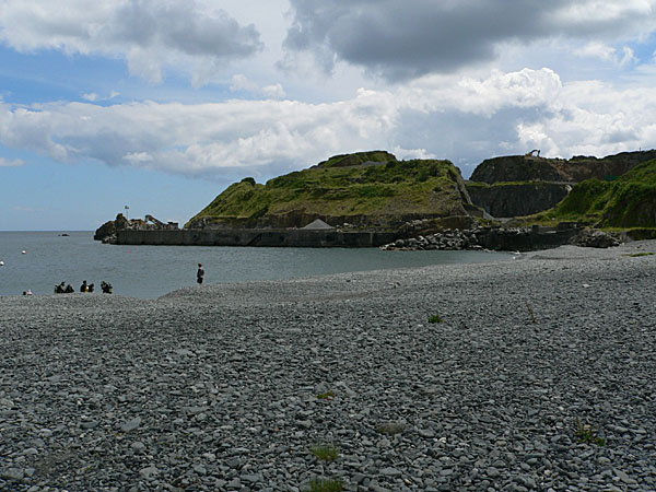 Der lange Strand und die durch die Dünen führenden Wanderweg laden zu einem längeren Spaziergang ein, so geht es dann noch ein Stück Richtung Süden am Strand entlang. Übrigens auch auffällig: praktisch keine Muscheln, aber auch kein Tang. Noch eine Besonderheit findet man hier, nämlich Schiefer, der von schwarz über grau und ocker bis zu silbrig hier auftaucht. Nach dem Mittag geht es wieder weiter nördlich und so kommt man nach Porthleven.