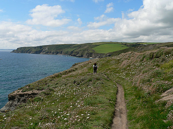 Es ist nicht unbedingt so, dass manche Gewalttouren von vornherein so abzusehen sind. Sondern das passiert oft so wie an diesem Tag. Das Wetter ist prima, die Sonne scheint und es ist nicht wirklich heiß, der Wind kühlt angenehm. Der South West Coastal Path ist ein fast vorbildlich ausgeschilderter und dokumentierter Wanderweg von Minehead um Devon und Cornwall herum bis Poole. Insgesamt 830 Meilen Weg, führt er auch rund um Lizard herum, und so auch durch Coverack. Also vorausschauend an diesem Morgen mit Wasser, Brötchen und einem fix gemachten Spaghetti-Bohnen-Salat bewaffnet und es geht los Richtung Kennack Sands, ausgewiesen sind in Coverack 6.5 Meilen.