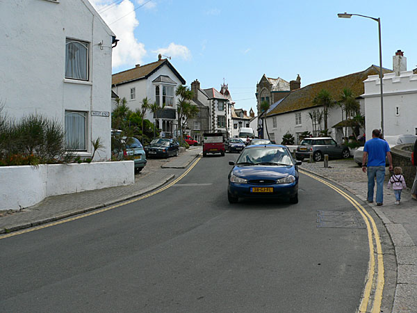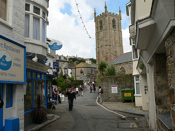 Kommt man aus Richtung Pendeen oder Penzance, bleibt man am besten gleich auf dem ersten Großraum-Parkplatz in Trenwith, auch wenn 4.20£ für ein Tagesticket (weniger geht nicht, nur in der Innenstadt, aus der man besser heraus bleibt) nicht gerade geschenkter Parkraum ist. Die Fußkranken nehmen die Shuttle-Busse in die Stadt, 50p p.P., das ist wieder günstig. Oder es wird in die Stadt gelaufen, natürlich. Kommt man von diesem Parkplatz herunter, liegt gleich rechts in einer kleinen Seitenstraße die Tourist Information; da gibt es neben vielen Prospekten auch ein Heftchen mit einer Stadtrunde, in drei Sprachen verfügbar. Die ist tatsächlich gut zu machen, auch wenn die Tour sehr verwirrend und etwas konfus beschrieben ist. So muss man erst mal darauf kommen, dass mit Aussichtsturm die Station der Küstenwacht gemeint ist. Ansonsten ist die Runde ganz gut beschrieben, man kann aber mit dem Stadtplan aus der TI auch so seine Wege erkunden.