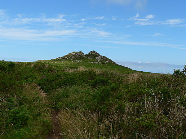 Man fährt also von Pendeen Richtung St. Ives, parkt kurz hinter Rosemergy an der alten Galver Mine und geht von dort hinauf zum Carn Galver, der von einem Stapel riesiger Steine gekrönt ist. Es erinnert zwar etwas an Dartmoor, allerdings kommt man wegen des pieksigen Gestrüpps nicht gut an die Gipfel heran. Ansonsten sind die Wege gut zu gehen, einige Pferde müssen diese Pfade auch vor kurzer Zeit passiert haben. Weiter Richtung Süden.