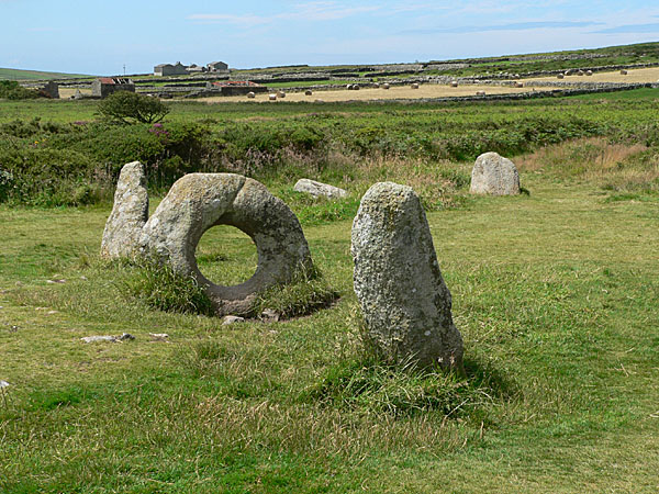 Von der alten Mine führt ein Weg zurück weiter westlich, der zum Men-an-tol führt, eine vermutliche Messstelle aus der Bronzezeit. Nach der Lage des Ringsteines und der beiden kleinen standing stones zu urteilen, könnte das Gebilde dazu gedient haben, einen bestimmten Sonnenstand zu messen, nämlich die Sommer-Sonnenwende. Nicht Genaues weiß man aber nicht.