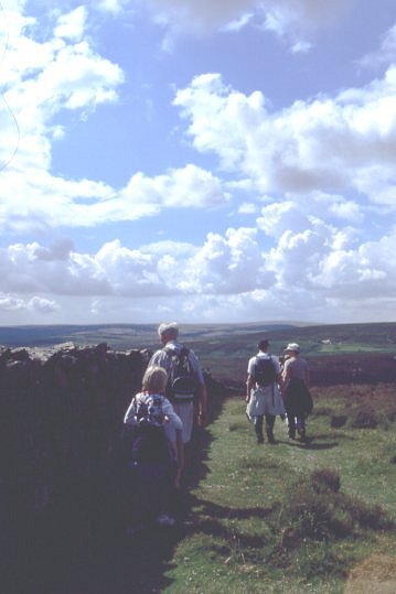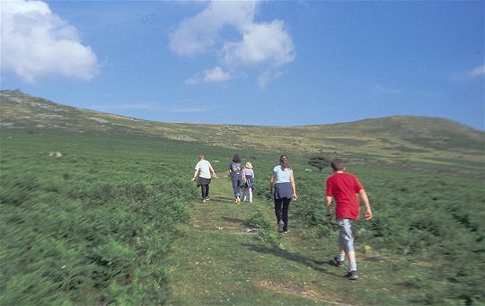 Der Führer ist ein älterer Herr, der launig und humorvoll und in bestem Englisch mit ausholenden erklärenden Gesten (für die Kinder) über die Geschichte der Gegend erzählt. Über den Erzabbau und die Bergleute, über Pflanzen und Tiere, über ungeschriebene Gesetze und Mythen, über das nie verlöschende Kaminfeuer im Pub, über die Steinkreise und die Tors. Es hat Riesenspaß gemacht, auch gerade den Kindern, schon wegen der Unmengen an Heidelbeeren unterwegs. Die geführten Wanderungen sind sehr hilfreich, vieles würde man selbst nicht sehen oder verstehen. Highly recommended.