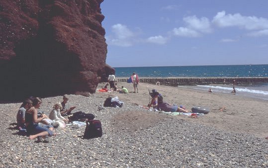 Versprochen ist versprochen, sagen die Kiddies: danach Badenachmittag in Dawlish-Warren, in der kleinen Bucht hinter dem Red Rock. Und vom Red Rock wieder eine wunderbare Aussicht und tiefblaues Wasser.
