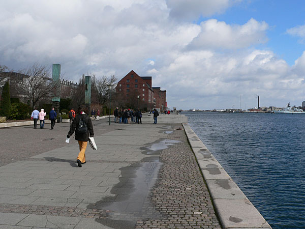 Tour 4 aus Klüches Buch ist eine längere Geschichte, mit einer eingebauten Fahrt auf die andere Seite des Hafens, was wir uns verkneifen. Alle Stationen aufzuzählen wäre müßig, aber das Kneipenviertel Nyhavn, Schloss Amalienborg, und am Ende auch die von Touristen umringte kleine Meerjungfrau stehen auf dem Programm. Diese Tour 4 zeigt eine Menge von Sehenswürdigkeiten und sollte auf jeden Fall gemacht werden. Es kommt zwischendurch sogar die Sonne zum Vorschein. Ein richtig schöne Runde, wenn auch eine gute Strecke zu gehen. In der Nähe der Meerjungfrau geht auch die Fähre zur Gegenseite ab, wir beschließen einen alternativen Weg.