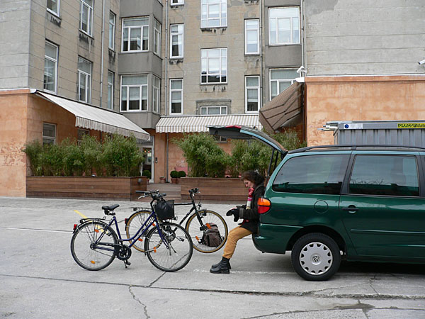 Nach einem gemütlichen Frühstück im Hotel holen wir unsere Räder aus dem Auto und machen uns in Richtung Stadt auf den Weg. Kaum vom Hotel ein paar Meter entfernt, zwingt uns ein Regenschauer zum Zwischenstop in einer Hauseinfahrt. Dazu ist es noch kalt und wir müssen in Mantel und Handschuhen fahren, nicht so der Bringer. Aber es hört bald wieder auf und es sollte tatsächlich bis zum Dienstag-Abend beinahe der letzte Regen gewesen sein. Obwohl es die ganze Zeit schweinekalt blieb, Kismet um diese Jahreszeit.