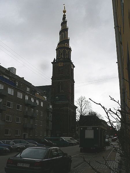 Anstatt nun mit dem Boot auf die andere Seite des Hafens zu fahren, gehen wir durch die Stadt zurück, essen in einem Pizza-Imbiss zu Mittag und trinken noch einen Kaffee im Cafe Mozart, einem urigen, aber nicht billigen Laden nahe der Marmor-Kirche. Fahren dann mit dem Rad über die Langebro-Brücke nach Christianshavn bis zur Kreuzung Strandgade/Torvegade und lassen die Räder dort stehen. Zu Fuß gehen wir nun weiter, wir stoßen auch auf die Vor Frelsers Kirke mit ihrem außen(!) führenden Aufgang zur Kirchturmspitze. Nix für Höhenkranke. Es geht weiter fast bis zum neuen Opernhaus und wieder zurück.
