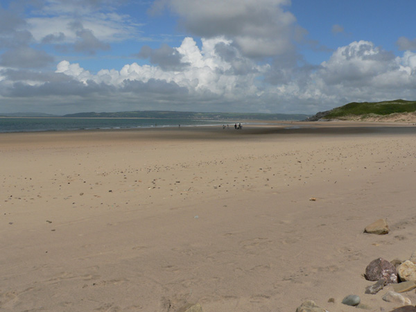 Vom Cwm Ivy herunter gehen wir weiter bis zum Campingplatz bei Hillend, zurück am Whitford Sands entland und zurück zum Auto.