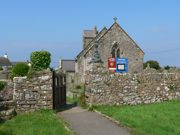 Am Morgen ist es hell draußen, die angesagten white clouds sind da, die keinen Regen verheißen. Nach dem Frühstück führt der Weg (wieder) nach Rhossili. Der Parkplatz neben der alten, kleinen Kirche, früher ein Gemeintipp, ist schon am Morgen voll bis zum Stehkragen und wir erwischen den vorletzten Parkplatz. Die Kirche stammt aus dem 14. Jahrhundert, ist für britische Verhältnisse schlicht, aber sehr nett und liebevoll ausgestattet. Sogar mit kleinen Flaschen Mineralwasser für die, die durstig hier ankommen, wie der beiligende Bibelspruch sagt.