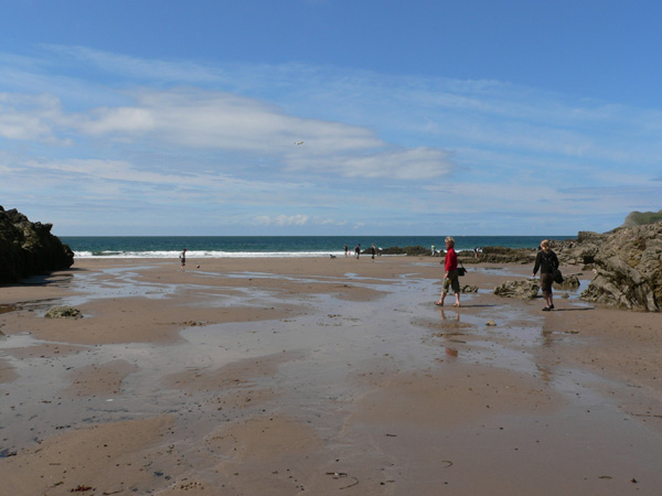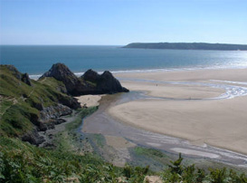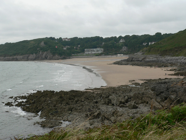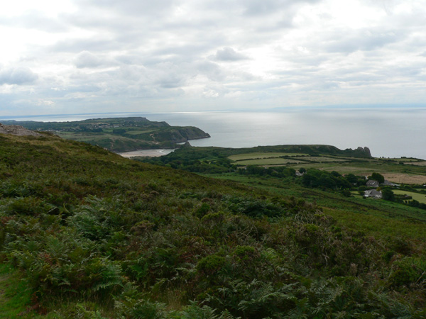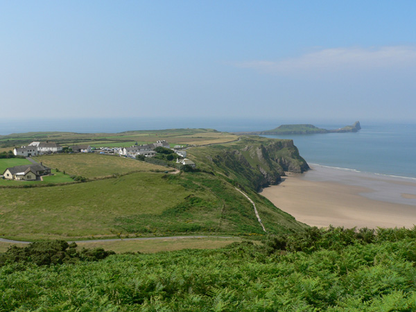 Mewslade Bay ist eine ähnlich malerische Bucht nicht weit von Rhossili, von dort geht es an der Küste antlang. Natürlich nicht die Wanderer-Autobahn, sondern in den Klippen entlang, auch mal mit ausgesetzten und schmalen Stellen, aber das macht sie Sache natürlich interessanter. Es ist kein sonderlich schwieriger oder sogar gefährlicher Weg, aber einen Meter von den Abstürzen der Klippen zu gehen hat seinen Reiz. Diese Strecke ist ausgesprochen nett, wenn man sich erst einmal von Mewslade Bay getrennt hat. Es gibt Parallelen zu Three Cliffs Bay, die Bucht ist eingeschlossen von Klippen, der Strand (bis auf den oberen Zipfel der Bucht) sauber und einfach ein Genuss. Nicht umsonst nach TCB ein beliebter Punkt, auch weil etwas oberhalb der Bucht die Pitton Farm einen Parkplatz in Fußreichweite anbietet. Der Preis hat sich allerding geändert, früher war es 1£, heute sind es 2£, die als honesty parking erwünscht sind.