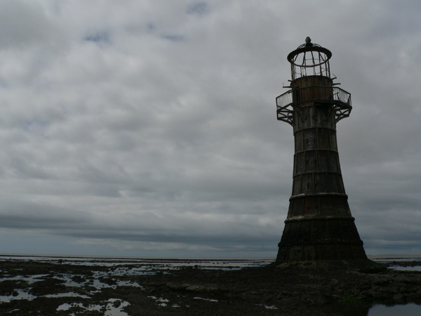 Wir dagegen machen uns auf den Weg Richtung Llanmadoc, parken vor dem Britannia Inn und gehen Richtung Loughor, dem Marschland zwischen Pembrokeshire und Gower. Der Weg führt am Rande des Marschlandes entlang bis in die Dünen. Der Weg durch die Dünen ist etwas langwierig, endet dann aber in einem Pinienwald, kurz dahinter biegt durch die Dünen zum Strand eine Durchstich ab. Kurz dahinter steht Whiteford Lighthouse (manche Quellen sprechen von Whitford Lighthouse). Die Strecke durch das bei Ebbe freiliegende Gelände, sonst Meeresboden, ist anstrengend. Irgendwann kommt man dann doch zum Leuchtturm, der von Jahr zu Jahr weniger wird. Mittagszeit, Rucksack-Mahlzeit.